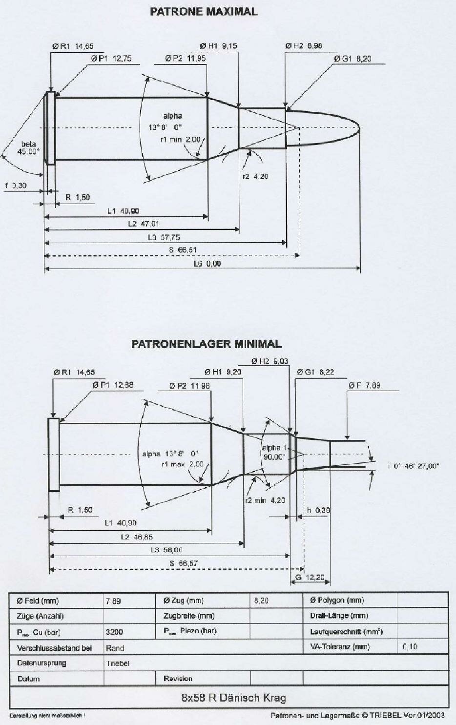 See below for the cartridge drawing sent to me by Norma of Sweden and pay attention to the maximum average chamber pressure: 3200 BAR.