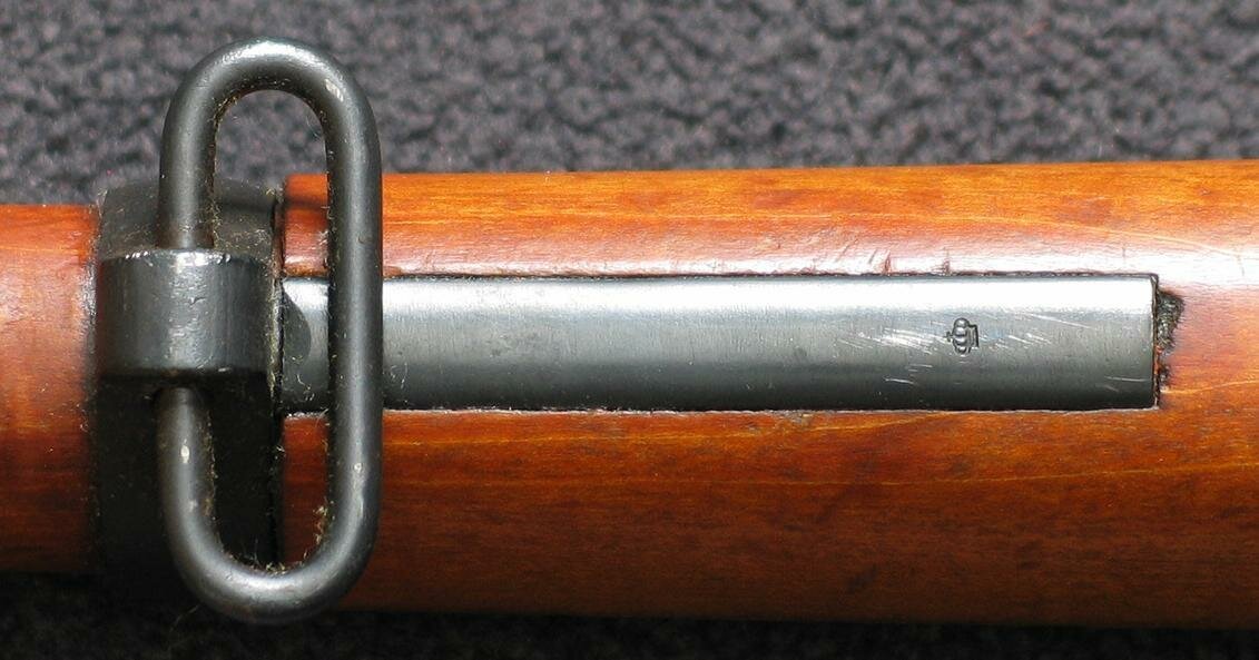 The barrel is marked for Carlsborg army workshop (now Karlsborg). There is a crown/CB cartouche on the wrist. The second little thing is that "flat" on the barrel. That was caused by a barrel vise when the new barrel was installed. We have noted a minority of m/96 with this kind of mark on the barrel shank. We don't have enough data to come to any conclusions about it. At some point it may be traceable to a specific army workshop.