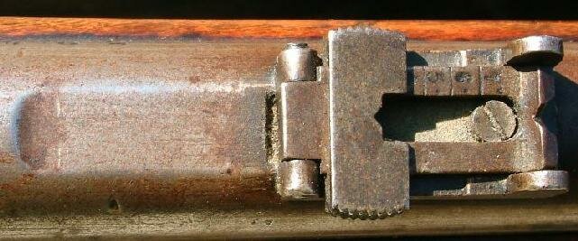 The milled portion of the barrel to the left of the rear sight was where the older musket sight screw holes