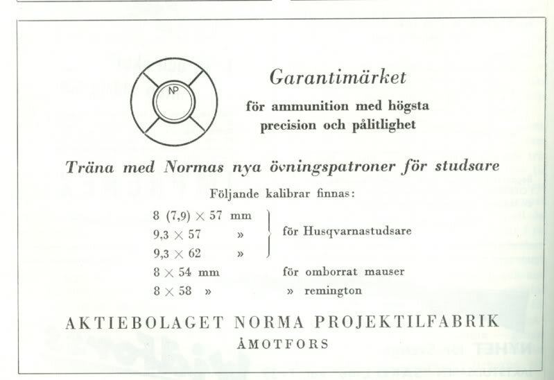 Figure 4. Advertisement for Norma ammunition in 1951 issue of Svensk Jakt magazine.