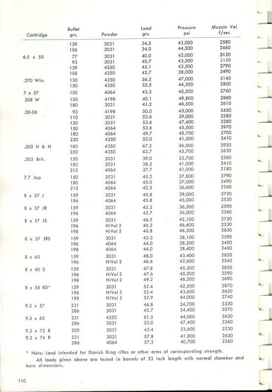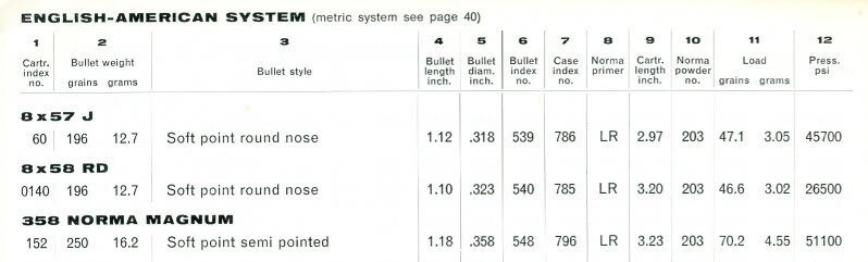 Figure 13. 8x58RD loading data from Norma Gunbugs Guide, No.59(1959).