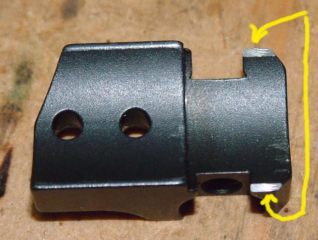 This could be easily remedied and I'll probably do that at a later date. You would lay a piece of 320 emory cloth across the top of the receiver with a few drops of oil and proceed to lap the base to the contour of the receiver.