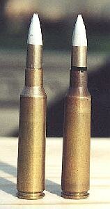 This is the most commonly available Swedish surplus cartridge with it's 139 grain (9 grams) boattail bullet. Originally developed for the m/41 sniper rifles, it replaced the m/94 bullet for general use. Velocity is 2592 fps (790 m/s) in the m/96 rifle.