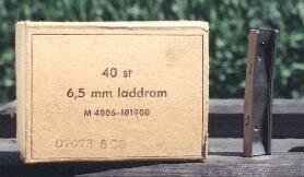 The m/94 cartridge was issued in this 10 round cardboard box, with 2 stripper clips.