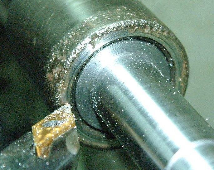This is the simple cut made to square the face of the action as part of the blueprinting process. Other steps will involve lapping of the inner torque shoulder and very lightly lapping the bolt lug races. This ratty old junk action will serve great purpose as a training aid. I really dislike making irreversable errors (oops!) on a good action.