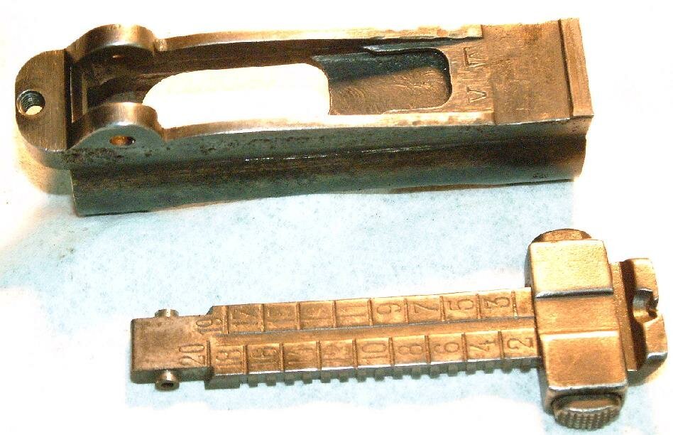 The elevation leaf slides back under this ledge and is kept firmly in place by the considerable pressure of the leaf spring (painful fingers will attest). The tiny pin that goes through that hole is there only in the event the elevator spring breaks. The tiny pin keeps the elevator from falling out of the rifle. Its a back-up retention design. The rifle's sights will function perfectly without that tiny pin.. until the elevator spring breaks.