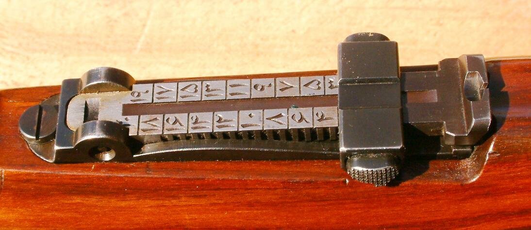 The Czech Persian 98/29 rear sight is identical in design to the K98k Mauser in that it has a removable tangent bed rear sight.