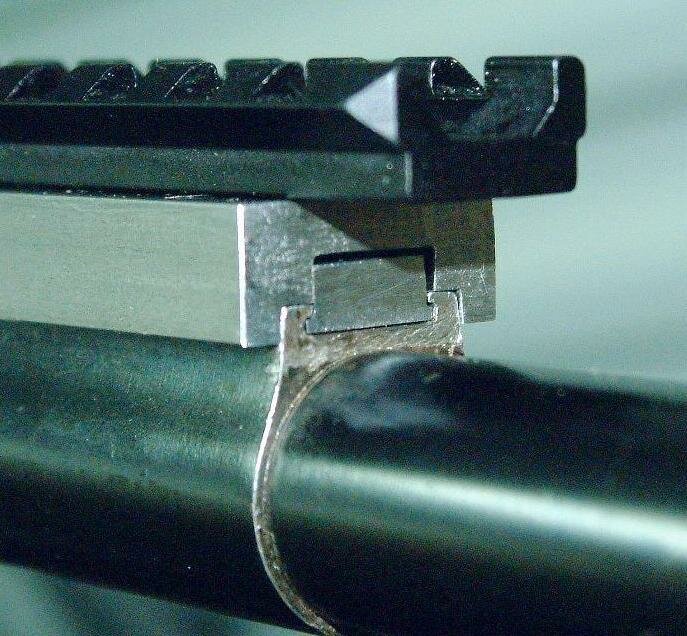This shows the second biggest challenge: height. There's less than 1/8" between the bottom of the rail and the handguard. On rifles with handguard of this type there's no way around having to have the rail in this position if we want to have adequate ring and eye relief adjustment. Its still lower than other mounts of this type.